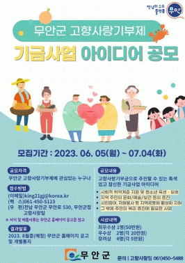 À̹ø ¾ÆÀ̵ð¾î °ø¸ðÀüÀº Áö³ 1¿ù 1ÀϺÎÅÍ ½ÃÇàµÈ °íÇâ»ç¶û±âºÎÁ¦¸¦ ÅëÇØ ¸ð±ÝµÈ ±âºÎ±ÝÀ» Áö¿ªÁÖ¹ÎÀÌ ÇÊ¿ä·Î ÇÏ°í ±âºÎÀÚ°¡ °ø°¨ÇÒ ¼ö ÀÖ´Â ±â±Ý»ç¾÷À» Àû±Ø ¹ß±¼ÇϰíÀÚ Àü ±¹¹Î ´ë»óÀ¸·Î °ø°³ ¸ðÁýÀ» ÁøÇàÇÑ´Ù.