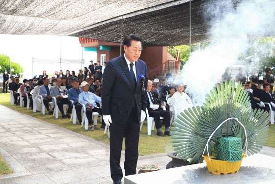 ¿ÃÇØ Ãß³ä½ÄÀº Äڷγª19 Á¾½Ä ¼±¾ð°ú ±¹°¡º¸ÈƺΠÃâ¹ü ÀÌÈÄ Ã³À½À¸·Î °³ÃֵƴÙ. ±¹°¡À¯°øÀÚ¿Í À¯Á·, °î¼º±º¼ö, °î¼º±ºÀÇȸ ÀÇÀå, ±â°ü »çȸ´ÜüÀå µî 300¿© ¸íÀÌ Âü¼®ÇØ ±¹°¡¿Í ±¹¹ÎÀ» À§ÇØ Èñ»ýÇϰí Çå½ÅÇÑ ¼ø±¹¼±¿°ú È£±¹¿µ·ÉÀÇ À§ÈÆÀ» ±â·È´Ù.