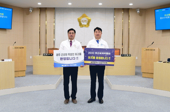 À̳¯ Çà»ç¿¡´Â ±èÅÂ¿Ï ±¤»ê±¸ÀÇÀå°ú ÀÌ»ó¿í ºÎ»ê µ¿±¸ÀÇÀåÀ» ºñ·ÔÇØ ¾ç ÀÇȸ ÀÇ¿øµéÀÌ Âü¿©ÇßÀ¸¸ç, °íÇâ»ç¶û±âºÎ±ÝÀ» »óÈ£ ±âŹÇÏ°í ¡®2030 ºÎ»ê¼¼°è¹Ú¶÷ȸ¡¯ÀÇ ºÎ»ê À¯Ä¡ ±â¿øÀ» À§ÇÑ È«º¸¿¡µµ Çù·ÂÇϱâ·Î Çß´Ù.