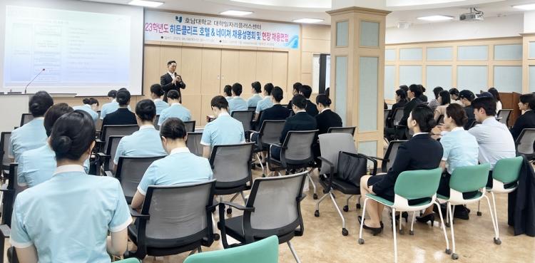 ÀÌ¿¡¾Õ¼ À̳¯ ¿ÀÀü¿¡´Â 3È£°ü 1Ãþ Àâ¼½¼Ç½Ç¿¡¼ È÷µçŬ¸®ÇÁ È£ÅÚ&³×ÀÌÃÄ Ã¤¿ë¼³¸íȸ¸¦ °®°í ä¿ë Á÷¹«¿Í º¹Áö¿©°Ç, ±Ù¹«È¯°æ µî ä¿ë Àü¹Ý¿¡ ´ëÇÑ ¼³¸íȸ¸¦ ÅëÇØ ¼ºñ½ºÁ÷¹«¿¡ ´ëÇÑ ÀÌÇØ¸¦ ³ôÀÏ ¼ö ÀÖ¾úÀ¸¸ç, Àλç´ã´çÀÚ¿Í ÁúÀÇ ÀÀ´äÀ» ÅëÇØ ÇлýµéÀÇ ±Ã±ÝÁõÀ» ÇØ¼ÒÇÒ ¼ö ÀÖ¾ú´Ù.