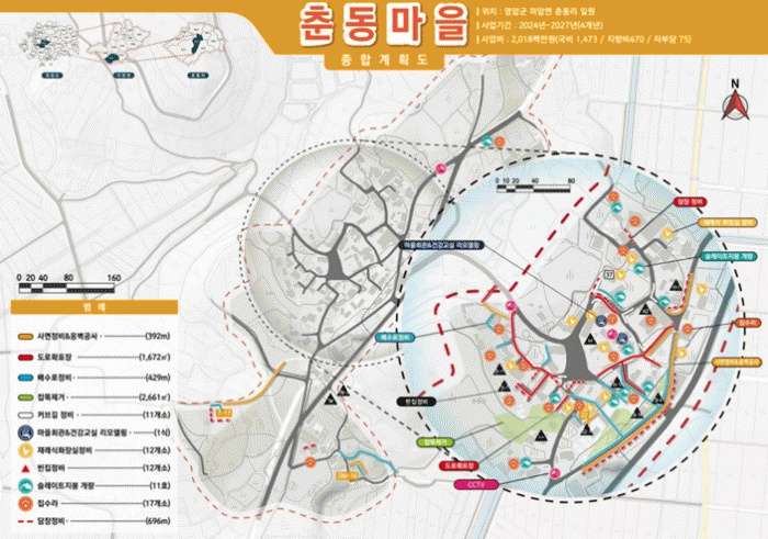 2023³â 6¿ù ÇöÀç, 50¼¼´ë 83¸íÀÇ ÁÖ¹ÎÀÌ »ì°íÀÖ´Â Ãᵿ¸¶À»¿¡´Â 2027³â±îÁö ÃÑ»ç¾÷ºñ 20¾ï ¿øÀ» µé¿© ¡â¸¶À»¾È±æ Á¤ºñ ¡â½½·¹ÀÌÆ® ÁöºØ °³·® ¡âÀç·¡½Ä ÈÀå½Ç Á¤ºñ µîÀÌ ÁøÇàµÈ´Ù.