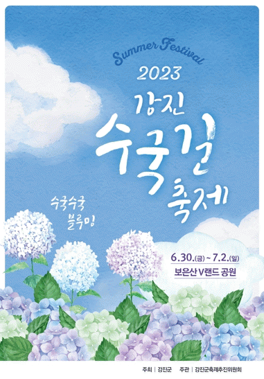 12ÀÏ °Áø±º¿¡ µû¸£¸é 2023 °Áø ¼ö±¹±æ ÃàÁ¦°¡ ¡®¹°, ½£ °ÁøÀÇ ¿©¸§¼ÓÀ¸·Î¡¯¸¦ ½½·Î°ÇÀ¸·Î, 6¿ù 30ÀϺÎÅÍ 7¿ù 2ÀϱîÁö 3Àϰ£ º¸Àº»ê V·£µå ÀÏ¿ø¿¡¼ °³ÃֵȴÙ.