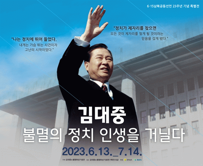 6.15 ³²ºÏÁ¤»óȸ´ã 23ÁÖ³âÀ» ±â³äÇÏ´Â À̹ø Àü½Ã´Â ¡®±è´ëÁß ºÒ¸êÀÇ Á¤Ä¡ ÀλýÀ» °Å´Ò´Ù¡¯´Â ÁÖÁ¦·Î ¿À´Â 13ÀϺÎÅÍ 7¿ù 14ÀϱîÁö ±è´ëÁ߳뺧ÆòÈ»ó ±â³ä°ü ±âȹÀü½Ã½Ç 1Ãþ¿¡¼ ¿¸°´Ù.