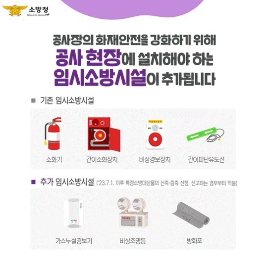 Áö³ÇØ 12¿ù ¼Ò¹æ½Ã¼³ ¼³Ä¡ ¹× °ü¸®¿¡ °üÇÑ ¹ý·üÀÌ °³Á¤µÊ¿¡ µû¶ó °ø»çÇöÀåÀÇ ÈÀç¾ÈÀü°ü¸® °È¸¦ À§ÇØ Àӽüҹæ½Ã¼³ ¼³Ä¡ ±âÁØÀÌ °ÈµÆ´Ù.