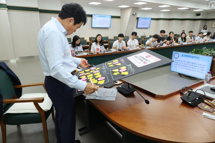 À̳¯ ÇлýµéÀº Á÷Á¢ ¡®ÃÑÀå´Ô°ú ÇÔ²²ÇÏ´Â ¹«¾ùÀÌµç ¹°¾îº¸¼¼¿ä¡¯ Äڳʸ¦ ÁغñÇÏ¸ç ±â´ë°¨À» ³ªÅ¸³Â´Ù. <Àü³²´ë, ÃÑÀå¸í¿¹Çлý, Á¤¼ºÅà ÃÑÀå>À̶ó´Â ¼¼ °³ÀÇ Ä«Å×°í¸®¿¡¼ ±íÀÌ ÀÖ´Â Áú¹®°ú ¼º½ÇÇÑ ´äº¯ÀÌ ¿À°¬´Ù.