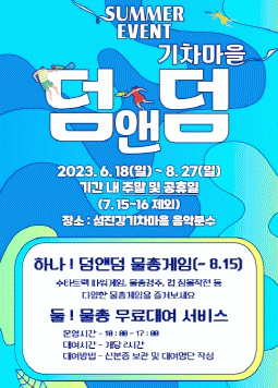 À̹ø ¡®±âÂ÷¸¶À» ´ý¾Ø´ý¡¯ À̺¥Æ®´Â À½¾ÇºÐ¼ö¸¦ Ȱ¿ëÇÑ ¹°ÃѳîÀÌ ÇÁ·Î±×·¥À¸·Î ÁøÇàµÈ´Ù. °ü±¤°´µéÀº 6¿ù 18ÀϺÎÅÍ 8¿ù 15ÀϱîÁö ¸ÅÁÖ ÁÖ¸»°ú °øÈÞÀÏ¿¡ ÇÏ·ç 2ȸ¾¿ ÃÑ 3°¡Áö Á¾·ùÀÇ ¹°ÃÑ °ÔÀÓ¿¡ Âü¿©ÇÒ ¼ö ÀÖ´Ù.