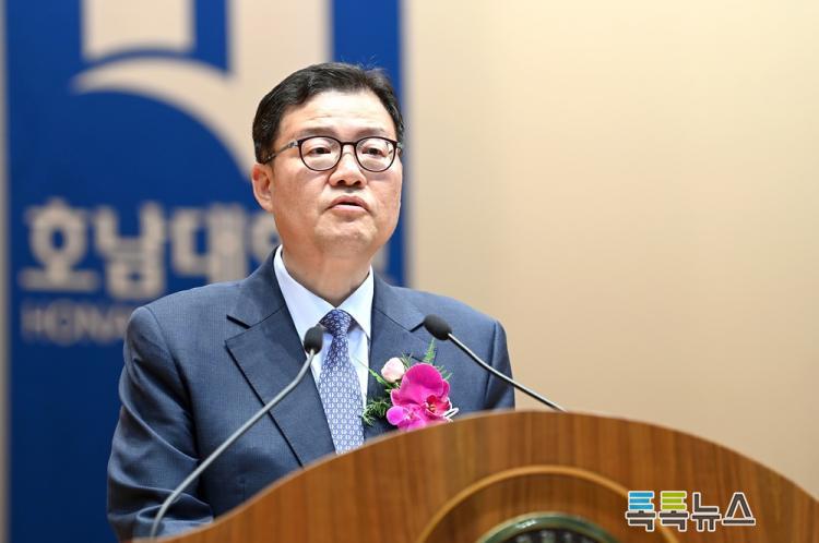 ¹Ú»óö È£³²´ëÇб³ ÃÑÀåÀº ½Ä»ç¿¡¼ ¡°°³±³ 45ÁÖ³âÀ» ¸Â´Â ¿À´ÃÀÌ È£³²´ëÇб³°¡ »õ·Î¿î ¿ª»ç¸¦ ½á ³»·Á°¡´Â Ãâ¹ßÁ¡¡±À̶ó¸ç, ¡°´ëÇÐÇõ½Å°ú ¹Ì·¡ÀÎÀç ¾ç¼º, Áö¿ª°ú ±¹°¡¹ßÀüÀ̶ó´Â ´ëÇÐÀÇ »ç¸íÀ» ´ÙÇϱâ À§ÇØ Áö¿ª»çȸ¿Í ¼ÒÅëÇÏ°í °ø°¨ÇÏ¸ç ´ã´ëÇÏ°Ô ¾ÕÀ¸·Î ³ª¾Æ°¡ÀÚ¡±°í °Á¶Çß´Ù.