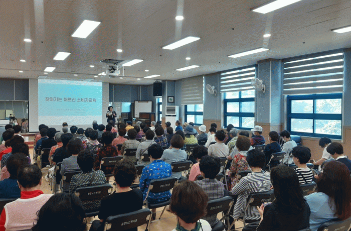 À̹ø ±³À°Àº ±¤¾ç³ëÀκ¹Áö°üÀ» ÀÌ¿ëÇÏ´Â ¾î¸£½Å 80¿© ¸íÀÌ Âü¼®ÇÑ °¡¿îµ¥ ¾î¸£½ÅµéÀÇ ¼Òºñ ÇÇÇØ ¿¹¹æ°ú ¿Ã¹Ù¸¥ ¼Òºñ Ȱµ¿À» À§ÇØ ¸¶·ÃµÆ´Ù.