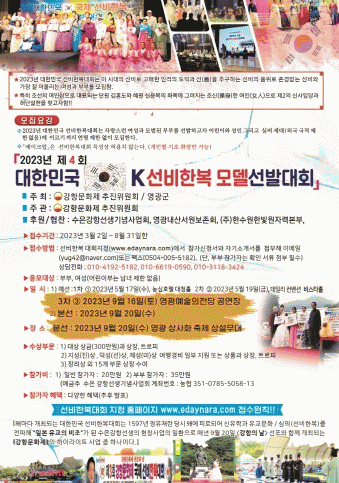 3Â÷ ¿¹¼±Àº 9¿ù 16ÀÏ ¿µ±¤ ¹®È¿¹¼úÀÇ Àü´ç¿¡¼ °³ÃֵǸç, Âü°¡½ÅûÀº 8¿ù 31ÀϱîÁö ¼±ºñÇѺ¹´ëȸ ȨÆäÀÌÁö¸¦ ÅëÇØ Á¢¼ö °¡´ÉÇÏ´Ù.