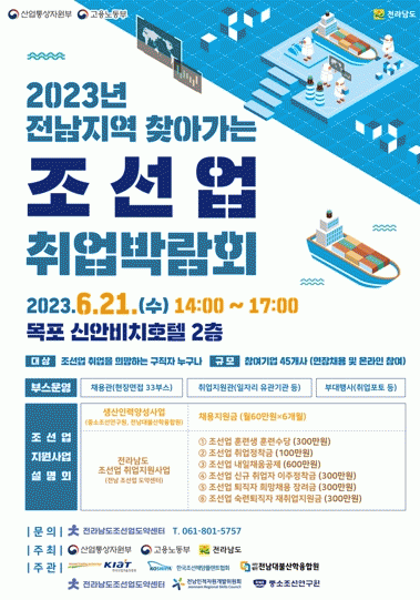 »ê¾÷Åë»óÀÚ¿øºÎ, °í¿ë³ëµ¿ºÎ, Àü¶ó³²µµ°¡ °øµ¿À¸·Î ÁÖÃÖÇÑ ¡®Ã£¾Æ°¡´Â Á¶¼±¾÷ Ãë¾÷¹Ú¶÷ȸ¡¯´Â 45°³ ±â¾÷ÀÌ Âü¿©ÇØ 346¸íÀ» ä¿ëÇÒ ¿¹Á¤ÀÌ´Ù. Á¶¼±¾÷ Ãë¾÷À» Èñ¸ÁÇÏ´Â ±¸Á÷ÀÚ´Â ´©±¸³ª Âü¿©ÇÒ ¼ö ÀÖÀ¸¸ç ½ÅºÐÁõ, À̷¼ µîÀ» ÁöÂüÇØ ¿ÀÈÄ 2½Ã±îÁö Çà»çÀå¿¡ ¹æ¹®ÇÏ¸é µÈ´Ù.