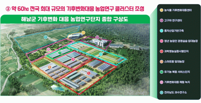 ±âÈĺ¯È´ëÀÀ ³ó¾÷¿¬±¸´ÜÁö¿¡´Â ³ó½Äǰ±âÈĺ¯È´ëÀÀ¼¾ÅÍ¿Í Àü¶ó³²µµ °ú¼ö¿¬±¸¼Ò(25ha), ±º ³ó¾÷¿¬±¸´ÜÁö(30ha)°¡ µé¾î¼°Ô µÈ´Ù.