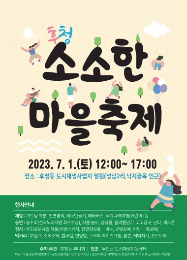 ¹«¾ÈÀ¾ µµ½ÃÀç»ý»ç¾÷ Áß Çϳª·Î ÃßÁøµÇ´Â À̹ø ¸¶À»ÃàÁ¦´Â Áֹΰø¸ð»ç¾÷ÀÇ ¼º°ú¸¦ °øÀ¯Çϰí Áֹΰú ¹æ¹®°´ µî¿¡°Ô º¼°Å¸®¿Í Áñ±æ °Å¸®¸¦ Á¦°øÇÏ¿© Áö¿ª¿¡ Ȱ·ÂÀ» Á¦°øÇϱâ À§ÇÑ ´Ù¾çÇÑ ÇÁ·Î±×·¥ÀÌ ÁøÇàµÈ´Ù.