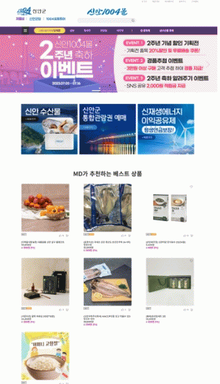¡®½Å¾È1004¸ôÀº ºñ´ë¸é ¿Â¶óÀÎ ¼ÒºñÆ®·»µå¿¡ ´ëÀÀÇϱâ À§ÇÏ¿© ½Å¾È±º¿¡¼ °³¼³ÇÑ ³ó¼öƯ»ê¹° ¿Â¶óÀÎ ¼îÇθô·Î, ¿Õ»õ¿ì, õÀÏ¿°, ±è, È«¾î, ³«Áö, »õ¿ìÁ£, À¯±â³ó½Ò, ¸¶´Ã, ¾çÆÄ, ¼¶ÃÊ, ´ëÆÄ µî °¹¹úÀ» ǰÀº ûÁ¤ Áö¿ª¿¡¼ »ý»êµÈ 350¿© °³ÀÇ Ç°¸ñÀ» ÆÇ¸Å ÁßÀ̸ç, ÇöÀç±îÁö ÃÑ 15¾ï ¿øÀÇ ÆÇ¸Å°í¸¦ ¿Ã·È´Ù.
