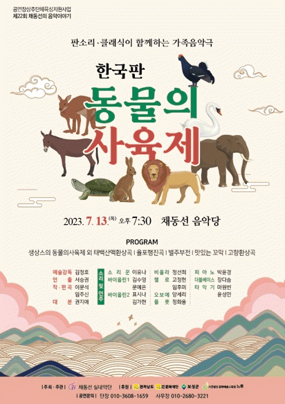 À̹ø¿¡ °ø¿¬ÇÏ´Â 'Çѱ¹ÆÇ, µ¿¹°ÀÇ »çÀ°Á¦'´Â º¸¼ºÀÇ ÆÇ¼Ò¸®¿Í ÇÁ¶û½º ÀÛ°î°¡ »ý»ó½ºÀÇ 'µ¿¹°ÀÇ »çÀ°Á¦'¸¦ Çù¾÷ÇØ º¸¼º¼Ò¸®¸¦ ³Î¸® ¾Ë¸®°í ³²³à³ë¼Ò ÇÔ²² Áñ±æ ¼ö ÀÖ´Â °¡Á· À½¾Ç±ØÀÌ´Ù.