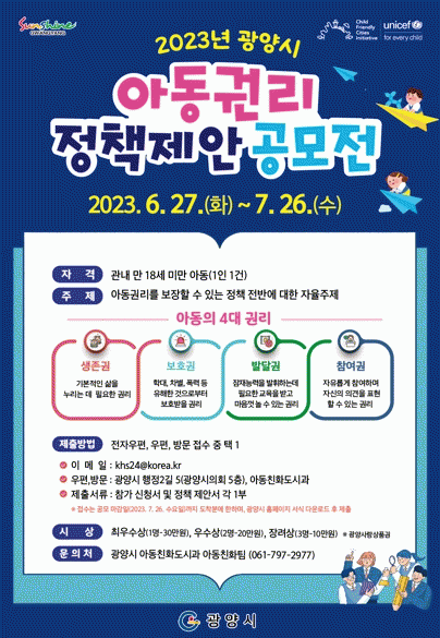 À̹ø °ø¸ð ÁÖÁ¦´Â ¾Æµ¿±Ç¸®(¡â»ýÁ¸±Ç ¡âº¸È£±Ç ¡â¹ß´Þ±Ç ¡âÂü¿©±Ç)¸¦ º¸ÀåÇÒ ¼ö ÀÖ´Â ±¤¾ç½Ã Á¤Ã¥ Àü¹Ý¿¡ ´ëÇÑ ÀÚÀ²ÁÖÁ¦À̸ç, ±¤¾ç½Ã °ÅÁÖ 18¼¼ ¹Ì¸¸ÀÎ ¾Æµ¿ÀÌ¸é ´©±¸³ª Âü¿© °¡´ÉÇÏ´Ù.