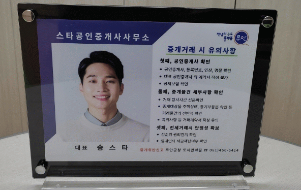 ¸íÆÐ¿¡´Â °³¾÷°øÀÎÁß°³»ç ½Ç¸í°ú ¾ó±¼ ±×¸®°í °Å·¡ ½Ã ÁÖÀÇ»çÇ× µîÀÌ ±âÀçµÇ¾î ÀÖ¾î ºÎµ¿»ê °Å·¡ ½Ã °Å·¡´ç»çÀÚ°¡ °øÀÎÁß°³»ç¸¦ ½±°Ô È®ÀÎÇÏ¿© ¾ÈÀüÇÑ °Å·¡°¡ ÀÌ·ç¾îÁöµµ·Ï °ü³» °øÀÎÁß°³»ç»ç¹«¼Ò¿¡ ¹èºÎÇß´Ù.