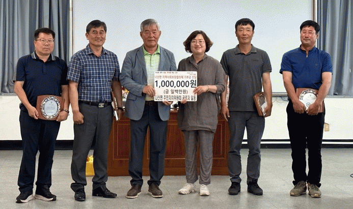29ÀÏ ³ª»ê¸é¿¡ µû¸£¸é ¹ÚÁ¾¿î ÁÖ¹ÎÀÚÄ¡À§¿øÈ¸ À§¿øÀå µî À§¿ø 5¸íÀÌ ÀÓ¿ø Ȱµ¿¿¡ ´ëÇÑ °ø·Î·Î ¹ÞÀº Æ÷»ó±Ý 100¸¸¿øÀ» ³ª»ê¸é Áö¿ª»çȸº¸ÀåÇùÀÇü¿¡ ±âŹÇß´Ù.