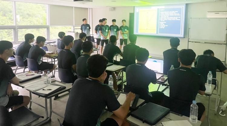 È£³²´ëÇб³ Ã౸Çаú ÀçÇлý 24¸íÀÌ Âü¿©ÇÑ À̹ø °½Àȸ´Â ÃÖ÷´Ü ÇнÀ Àåºñ¸¦ °®Ãá °Àǽǿ¡¼ Ã౸ ÀÌ·ÐÀ» ½Ç½ÃÇѵ¥ À̾î ÀÎÁ¶Àܵð Ã౸Àå¿¡¼ ½ÇÀü °æÇè°ú ÄÚιýÀ» ÇнÀÇß´Ù.
