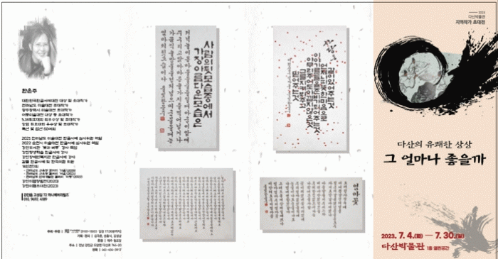 ÀÛ°¡´Â Æò¼Ò ÁÁÀº ±Û°ú ½Ã µîÀ» ÅëÇØ ¿µ°¨À» ¾ò¾î ÀÛ¾÷À» Çϰí ÀÖÀ¸¸ç, ƯÈ÷ À̹ø Àü½Ã¿¡¼´Â Á¤¾à¿ë ¼±»ý´ÔÀ» »ý°¢ÇÏ¸ç ¡®´Ù»êÀÇ À¯ÄèÇÑ »ó»ó ±× ¾ó¸¶³ª ÁÁÀ»±î¡¯, ¡®¸ñ¹Î½É¼ÀÇ ³»¿ë Áß Ã»·Å¡¯¿¡ °üÇÑ ±Û µîÀ» ¼¿¹·Î ´ã¾Ò´Ù.