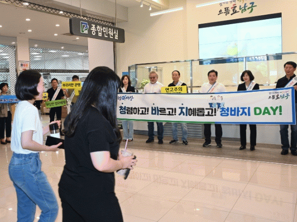 ¿ì¼± ³²±¸Ã» °øÁ÷ÀÚµéÀº û·Å¹®È ÁÖ°£ ù³¯ÀÎ 3ÀÏ ¿ÀÀü û¹ÙÁö¸¦ ÀÔ°í Ãâ±ÙÇÏ´Â Ä·ÆäÀÎÀ» ¹ú¿´´Ù. û¹ÙÁö´Â û·Å¹®È È®»êÀ» À§ÇÑ 3Çà½Ã 縰Áö·Î, ¡®Ã»·ÅÀº ¹Ù·Î Áö±ÝºÎÅÍ¡¯¿Í ¡®Ã»·ÅÇϰí, ¹Ù¸£°í, ÁöÇý·Ó°Ô¡¯¶ó´Â Àǹ̸¦ ´ã°í ÀÖ´Ù.