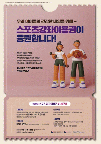 ½ºÆ÷Ã÷ °Á ÀÌ¿ë±Ç Áö¿ø »ç¾÷Àº ¿©°¡ ½ºÆ÷Ã÷ Ȱµ¿¿¡ ´ëÇØ Ãë¾à °èÃþ¿¡°Ô °øÁ¤ÇÑ ±âȸ¸¦ Á¦°øÇϱâ À§ÇÑ »ç¾÷À¸·Î, °¡¸Í üÀ°½Ã¼³ ÀÌ¿ë ½Ã 1ÀÎ´ç ¿ù ÃÖ´ë 9¸¸ 5õ ¿øÀ» ÃÖ´ë 12°³¿ù±îÁö º¸Á¶±ÝÀ¸·Î Áö¿øÇÑ´Ù.