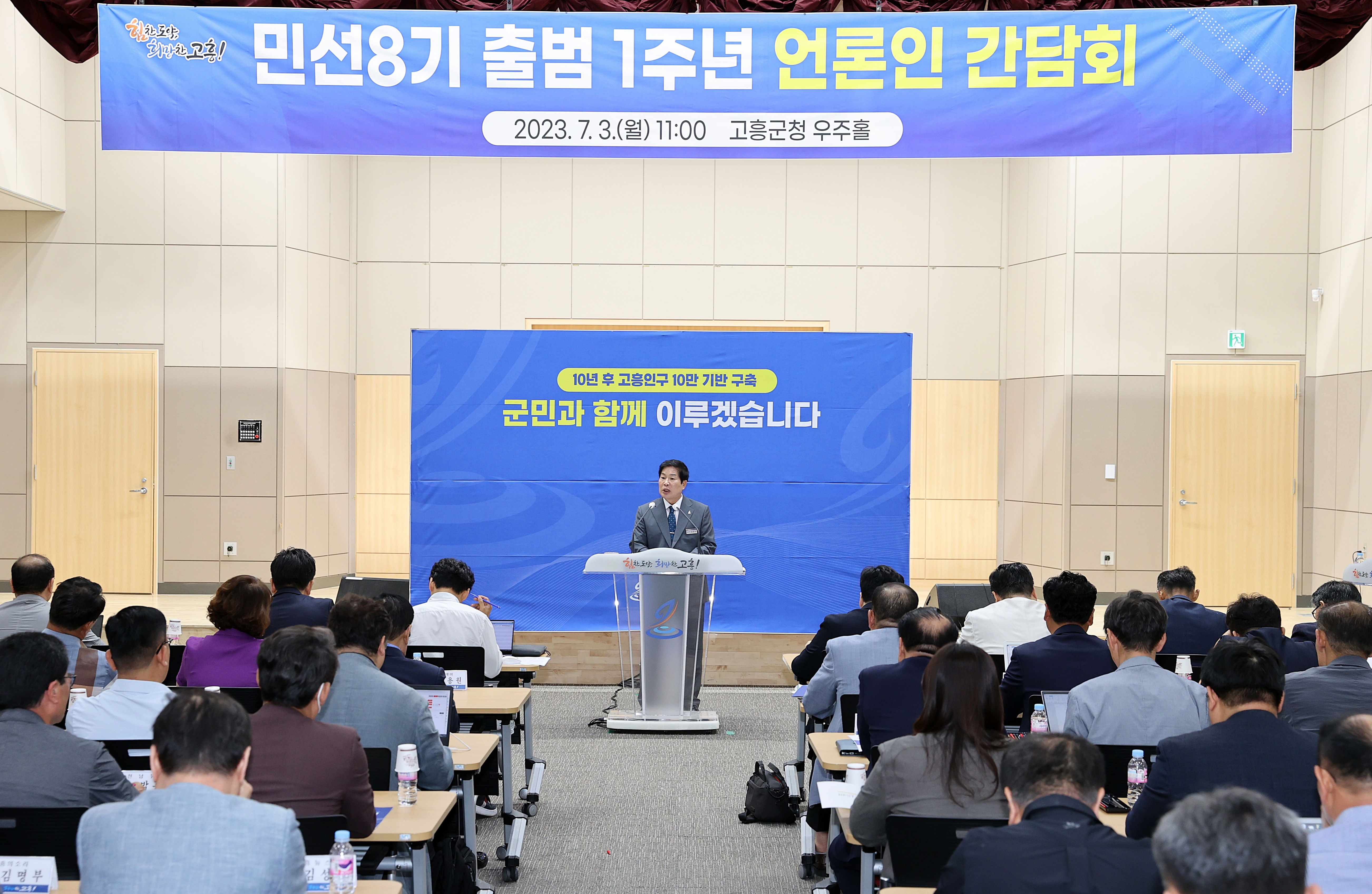 ÀÌ¾î ¾ÕÀ¸·Î 3³â°£ ±ºÁ¤ ¿î¿µ¹æÇâ¿¡ ´ëÇÑ Ã»»çÁøÀ» ¹àÈ÷¸é¼ ¡®10³â ÈÄ °íÈïÀα¸ 10¸¸ÀÇ ±â¹Ý ±¸Ã࡯ ºñÀü ½ÇÇöÀ» º»°ÝÈÇÏ°í °íÈïÀÇ Èñ¸ÁÂù ¹Ì·¡¸¦ °ßÀÎÇÒ ¿ªÁ¡»ç¾÷¿¡ ´ëÇØ ¼³¸íÇß´Ù.