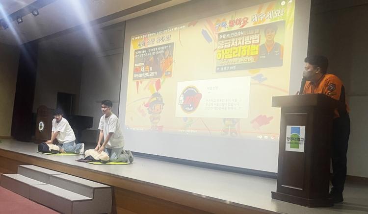 ±¤ÁÖ ³²ºÎ¼Ò¹æ¼¿Í Çù¾÷À¸·Î ÁøÇàµÈ À̳¯ ±³À°¿¡¼ 119Àç³´ëÀÀ´Ü »ýȰ¾ÈÀüÆÀ ¼ÛÁ¤Å ¼Ò¹æ»ç´Â ÀÚµ¿½ÉÀåÃæ°Ý±â(AED) »ç¿ë¹ý, ½ÉÆó¼Ò»ý¼ú ÀÀ±Þóġ, ÈÀç ¹ß»ý½Ã ´ëó ¿ä·É, ¿©¸§Ã¶ ¹°³îÀÌ µî À¯ÇлýµéÀÌ ¾ÈÀü¿¡ ´ëÇÑ Á߿伺À» ÀνÄÇϰí Àç³°ú ¾ÈÀü»ç°í¿¡ ´ëó ÇÒ ¼ö ÀÖ´Â Áö½Ä°ú ¹æ¹ýÀ» ±³À°Çß´Ù. ¶Ç Çб³ ÀÚµ¿½ÉÀåÃæ°Ý±â(AED) À§Ä¡¿Í »ç¿ë¹ý ½Ç½ÀÀ» ÅëÇØ ÀÀ±Þ»óȲ¿¡ ´ëóÇÏ´Â ¹æ¹ýÀ» ¼÷ÁöÇÏ´Â ½Ã°£À» °¡Á³´Ù.