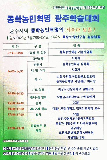ÀÌ»ó½Ä Àü³²´ëÇб³ ¸í¿¹±³¼ö°¡ ±âÁ¶ ¹ßÇ¥¸¦ ÇÑ´Ù. ¹ÎÁ·¹®Á¦¿¬±¸¼Ò ¹Ú¿ë±Ô ¿¬±¸À§¿øÀº ¡°³ªÁÖ ºÏµ¿ºÎ¿¡¼ Èñ»ý´çÇÑ µ¿Çгó¹ÎÇõ¸í±º-ħ»ê¡¤»çâ ÀüÅõ, ¿ëÁø»ê ÀüÅõ, ³²»êÃÌ ÀüÅõ¸¦ Áß½ÉÀ¸·Î-¡±À» Á¦1ÁÖÁ¦·Î ¹ßÇ¥ÇÑ´Ù. Àü³²´ëÇб³ Á¤Ä¡¿Ü±³Çаú ±èÀç±â ±³¼ö´Â ¡°µ¿Çгó¹ÎÇõ¸í Á¤½Å ¼±¾ç ¹æ¾È¡±À» Á¦2ÁÖÁ¦·Î ¹ßÇ¥ÇÑ´Ù.