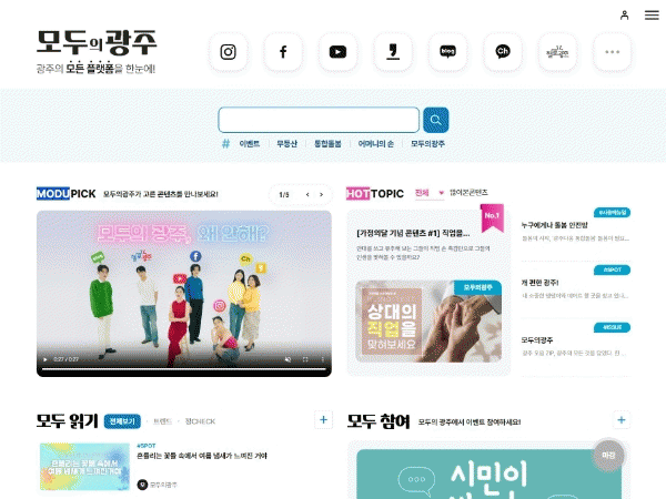 ±¤Áֽà °ø½Ä »çȸ°ü°è¸Á¼ºñ½º(SNS) ä³ÎÀÎ ÀνºÅ¸±×·¥¡¤ÆäÀ̽ººÏ¡¤À¯Æ©ºê¡¤Ä«Ä«¿À½ºÅ丮¡¤ºí·Î±×¡¤Ä«Ä«¿ÀÅåä³Î°ú ÀÎÅͳݹæ¼Û ¡®Çï·Î±¤ÁÖ¡¯, ½ÃÁ¤¼Ò½ÄÁö ¡®¸Å°ÅÁøG¡¯ µîÀÇ ÄÜÅÙÃ÷¸¦ ¡®¸ðµÎÀDZ¤ÁÖ¡¯¿¡¼ ¸¸³ªº¼ ¼ö ÀÖ´Ù.