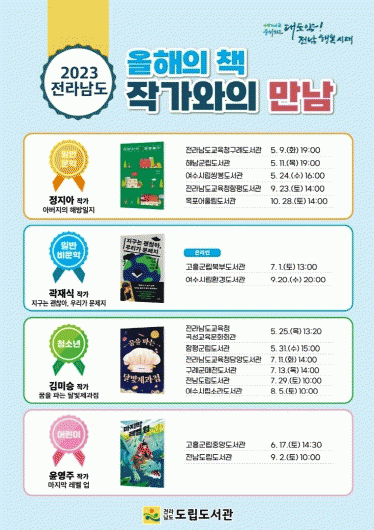 ¡®ÀÛ°¡¿ÍÀÇ ¸¸³²¡¯Àº Àü³²µµ¸³µµ¼°ü°ú ±¸·Ê±ºÀÌ Àü³²µµ¹ÎÀÌ Àоî¾ß ÇÒ Ã¥À» ¼±Á¤Çϰí, ¼±Á¤µÈ µµ¼ÀÇ ÀÛ°¡¸¦ ÃÊ´ëÇÏ¿© ºÏÅäÅ© ¹× °¿¬À» ÁøÇàÇÏ´Â µ¶¼¹®È ÇÁ·Î±×·¥ÀÌ´Ù.