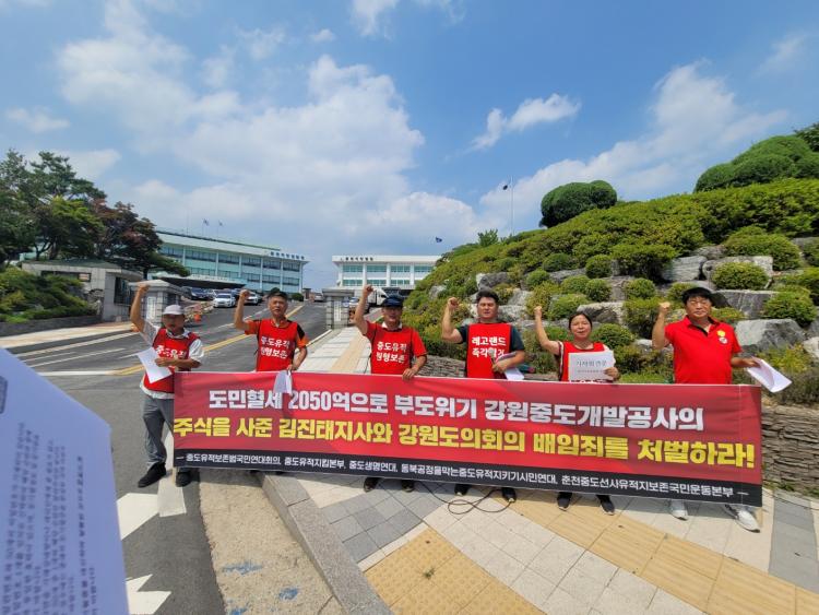 ±×·¯ÇÑ ÁÖ½ÄÀº ÈÞÁöÁ¶°¢¿¡ ºÒ°úÇÏ´Ù. ±×·±µ¥ ±èÁøÅÂÁö»ç¿Í °¿øµµÀÇȸ´Â GJCÀÇ ÈÞÁöÁ¶°¢ÁÖ½ÄÀ» »ç¹ö·È´Ù. À̰ÍÀº ¸í¹éÈ÷ ¹èÀÓÁËÀÌ´Ù. °¿øµµ¹ÎÀÇ Ç÷¼¼·Î °¿øµµ¹Î¿¡°Ô´Â ¼ÕÇØ¸¦ ³¢Ãưí GJC¿¡°Ô´Â ÀÌÀÍÀ» ÁáÀ¸´Ï ¹èÀÓÁËÀÎ °ÍÀÌ´Ù.