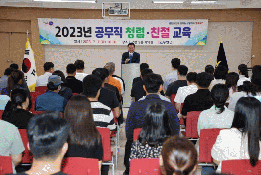 À̹ø ±³À°Àº ¿ÃÇØ °ø¹«Á÷À¸·Î ÀüȯµÈ 70¿© ¸íÀ» ´ë»óÀ¸·Î ¸¶·ÃµÈ °ÍÀ¸·Î ¹«¾È±ºÃ» ½Å±Ô °ø¹«Á÷ Á÷¿øµéÀÇ Ã»·Åµµ Çâ»óÀ» À§ÇÑ Ã»·Å ¸Þ½ÃÁö Àü´Þ ½Ã°£À» °®°í °øÁ÷Àڷμ ÀÚ±à½É°ú Ä£Àý¼ºñ½º Á¤½ÅÀ» ÇÔ¾çÇÏ´Â ±³À°À¸·Î ÁøÇàµÆ´Ù.