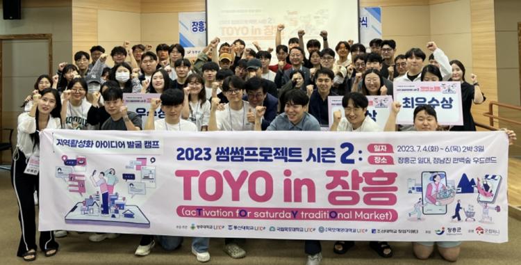¡®TOYO(acTivation fOr saturdaY traditiOnal market) in ÀåÈÀº ÀåÈï Åä¿ä½ÃÀå°ú Àα٠Áö¿ª °æÁ¦ Ȱ¼ºÈ¸¦ À§ÇÑ ¾ÆÀ̵ð¾î ¹ß±¼ Ä·ÇÁ·Î, ±¤ÁÖ´ëÇб³ ÀÎÅ׸®¾îµðÀÚÀÎÇаú¸¦ ºñ·ÔÇØ 5°³ ´ëÇÐ(±¤ÁÖ´ë, ¸ñÆ÷´ë, ¸ñÆ÷ÇØ¾ç´ë, µ¿½Å´ë LINC3.0»ç¾÷´Ü, Á¶¼±´ë â¾÷Áö¿ø´Ü) 22°³ Çаú 50¿© ¸íÀÇ ÇлýµéÀÌ Âü¿©Çß´Ù.