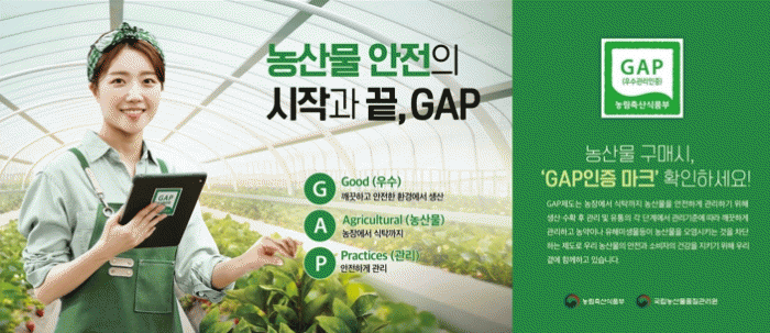 ³ó»ê¹°¿ì¼ö°ü¸®(GAP) Á¦µµ´Â »ý»ê¿¡¼ À¯Åë´Ü°è±îÁö ´Ü°è¸¶´Ù ³ó¾à, Áß±Ý¼Ó µî À§ÇØ¿ä¼Ò¸¦ ±âÁØÄ¡ À̳»·Î ÀûÀýÇÏ°Ô °ü¸®ÇØ ¾ÈÀüÇÑ ³ó»ê¹°ÀÓÀ» ÀÎÁõÇÏ´Â Á¦µµ´Ù. ±¹¸³³ó»ê¹°Ç°Áú°ü¸®¿øÀº ¸Å³â ³ó»ê¹°¿ì¼ö°ü¸® ¿ì¼ö»ç·Ê °æÁø´ëȸ¸¦ ÅëÇØ ³ó»ê¹°¿ì¼ö°ü¸®(GAP) ÀÎÁõ³ó°¡ ¼º°ø»ç·Ê¿Í À¯Åë ºÐ¾ß ÆÇ·Î ¹ß±¼¡¤È«º¸¸¦ ÃßÁøÇϰí ÀÖ´Ù.