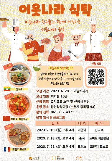 ¼øÃµ½Ã °ü°èÀÚ´Â ¡°ÀÌ¿ô³ª¶ó ½ÄŹÀ» ÅëÇØ ¼øÃµÀÇ ¿Ü±¹ÀÎ À¯ÇлýµéÀÌ Áö¿ª»çȸ¿Í ¿¬°áµÇ°í, ½Ã¹ÎµéÀÌ ´Ù¾çÇÑ ³ª¶óÀÇ ¹®È¸¦ üÇèÇÒ ¼ö ÀÖ´Â ½Ã°£À» Á¦°øÇÒ ¼ö ÀÖ°Ô µÇ¾î ±â»Ú´Ù¡±¶ó¸ç "¾ÕÀ¸·Îµµ Àå¾ÈâÀÛ¸¶´çÀÌ ´Ù¾çÇÑ ¹®ÈÀÇ ±³·ù°¡ ÀÌ·ç¾îÁö´Â º¹ÇÕ¹®È°ø°£ÀÌ µÇµµ·Ï ³ë·ÂÇϰڴ١±¶ó°í ¸»Çß´Ù.