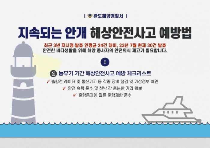 ÃÖ±Ù 3³â°£ ¾È°³ ¹ß»ý ½Ã±âÀÎ 3~7¿ù Áß ¼±¹Ú»ç°í´Â 185°ÇÀÌ ¹ß»ýÇß°í, ½Ã°èÁ¦ÇÑ ½Ã ÅëÁ¦ ±ÔÁ¤ÀÌ ¾ø´Â ¾î¼±ÀÇ »ç°í°¡ 103°Ç(Àüü 56%)À¸·Î Àý¹Ý ÀÌ»óÀ» Â÷ÁöÇϰí ÀÖÀ¸¸ç, ƯÈ÷ »ç°í´ëÀÀ¿¡ Ãë¾àÇÑ 1ÀÎ Á¶¾÷¼± ´ë»ó ¾î¼±À§Ä¡¹ß½ÅÀåÄ¡(V-PASS) ÀÌ¿ë ½Ç½Ã°£ ¸ð´ÏÅ͸µ ¹× ºñ»ó¿¬¶ô¸Á ±¸Ãà µî Áö¼ÓÀûÀÎ ¾ÈÀü°ü¸®¸¦ ½Ç½Ã Áß¿¡ ÀÖ´Ù