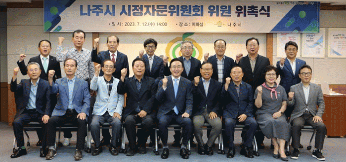 À±º´Å ³ªÁÖ½ÃÀåÀº ¡°³ªÁÖ¸¦ À̲ø¾î ¿À½Ã°í ¾ÕÀ¸·Î ³ªÁÖ¸¦ ¸¸µé¾î°¡´Âµ¥ ÁöÇý¿Í °æ·ûÀ» ¸ð¾ÆÁÖ½Ç ½ÃÁ¤ÀÚ¹®À§¿ø¿¡ ÈçÄèÈ÷ Âü¿©ÇØÁֽŠÀ§¿ø´Ôµé²² °¨»çµå¸®°í ¿µ±¤À¸·Î »ý°¢ÇÑ´Ù¡±¸ç ¡°³ªÁÖ ¹ßÀü°ú ¹Ì·¡¿¡ ´ëÇØ ÇÔ²² °í¹ÎÇÏ°í »õ·Î¿î µµ¾àÀÇ ±âÁ¡ÀÌ µÇ´Â ¼ÒÁßÇÑ ÀÚ¸®°¡ µÇ±æ ±â´ëÇÑ´Ù¡±°í ¹àÇû´Ù.