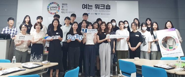 ±¤ÁÖ±¤¿ª½Ã ±¤»ê±¸ ±³À°µµ¼°ü°ú ÇÔ²² ÁøÇàµÇ´Â ¡®¿ì´Ù´Ù! ±¤»êSDGs 2023¡¯Àº ´ëÇлýÀΠû³âµéÀÌ Àü´ÞÀÚ°¡ µÇ¾î °ü³» ±³¿ø ¹× ±³À° Àü¹®Á÷¿øÀ» ´ë»óÀ¸·Î ¼¼°è½Ã¹Î ¿öÅ©¼ó°ú SDGs ¼ö¾÷ »ç·Ê¸¦ °øÀ¯Çϸç, ¼¼°è½Ã¹Î ±³À°À» È®»êÇϱâ À§ÇÑ È°µ¿À» ½ÃÀÛÀ¸·Î, Çб³, ¸¶À», °øÁ÷ÀÚ¸¦ ´ë»óÀ¸·Î ÁøÇàÇÏ´Â SDGsÀÇ ÀÌÇØ, ½Çõ Àü·« ޱ¸ µîÀÇ Áö¼Ó ±³À°À» À̾°¥ °èȹÀÌ´Ù.