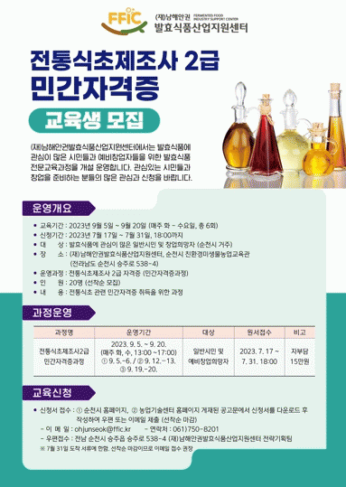 º» °úÁ¤À» À̼öÇϸé ÀüÅë½ÄÃÊÁ¦Á¶»ç 2±Þ ¹Î°£ÀÚ°ÝÁõ ¹ß±ÞÀÌ °¡´ÉÇϰí, ±³À° À̼öÀÚ´Â ¾ÕÀ¸·Î ÁøÇàµÉ ÀüÅë½ÄÃÊÁ¦Á¶»ç 1±Þ ÀÚ°ÝÁõ °úÁ¤°ú ¿¬°èÇÒ ¼ö ÀÖÀ¸¸ç, ¹ßÈ¿¼¾ÅÍÀÇ Áö¼ÓÀûÀÎ »ó´ã°ú °ü¸®·Î Ãë¾÷°ú â¾÷¿¡ ¼º°øÇÒ ¼ö ÀÖµµ·Ï Áö¿øÇÑ´Ù.