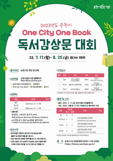 Âü¿©¸¦ ¿øÇÏ´Â ½Ã¹ÎÀº ÇØ´çÇÏ´Â ºÎ¹®(ÀϹÝ, û¼Ò³â, ¾î¸°ÀÌ)ÀÇ Ã¥À» ÀÐ°í ¼øÃµ½Ã¸³µµ¼°ü ´©¸®Áý¿¡¼ Âü°¡ ½Åû¼¿Í µ¶¼°¨»ó¹® ¾ç½ÄÀ» ³»·Á ¹Þ¾Æ ÀÛ¼º ÈÄ °Ô½ÃÆÇ¿¡ °Ô½ÃÇÏ¸é µÈ´Ù.
