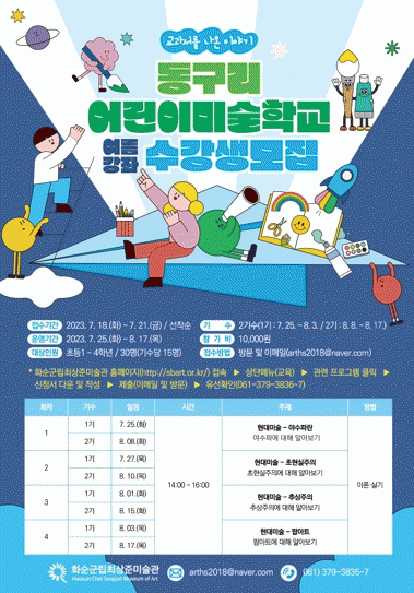 ȼø±º¸³ÃÖ»óÁع̼ú°ü¿¡¼ ¾Æµ¿À» ´ë»óÀ¸·Î ÇÏ´Â ¡®µ¿±¸¸® ¾î¸°ÀÌ ¹Ì¼úÇб³¡¯´Â 7¿ù25ÀÏ È¿äÀϺÎÅÍ 8¿ù 17ÀÏ ¸ñ¿äÀϱîÁö 4ÁÖ°£ ÁøÇàµÈ´Ù.
