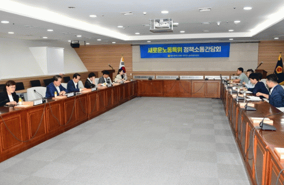 Áö¿ª ³ëµ¿È¯°æ °³¼±À» À§ÇÑ Á¤Ã¥¼ÒÅë°£´ãȸ¿¡´Â ±ÝȣŸÀÌ¾î »ç¹«Á÷ ³ëÁ¶ ±èÇÑ¿± À§¿øÀå°ú Á¶¿øÈ£ ºÎÀ§¿øÀå, ¹ÚÁß¾ç ´ëÀÇ¿ø, Á¶º´±â »ç¹«±¹Àå, ¼ÛÀμº ´ë¿ÜÇù·Â±¹ÀåÀÌ Âü¼®Çß´Ù.