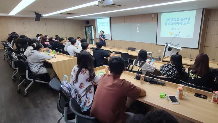 À强°æÂû¼ È«¹ÎÈñ ¿Ü»ç°üÀ» ÃÊû, 7¿ù 19ÀÏ ±³³» ÇàÁ¤°ü ½º¸¶Æ®°Àǽǿ¡¼ ÁøÇàµÈ ±³À°¿¡¼´Â ¸¶¾à¹üÁË, ±ÝÀ¶¹üÁË, ±³Åë¹üÁË, °æÂû ½Å°í ¹æ¹ý, °Á¦ Ãâ±¹ ±âÁØ µîÀ» ³»¿ëÀ¸·Î Çѱ¹¾î¿¡ ´ÉÅëÇÏÁö ¾ÊÀº ÇлýµéÀ» À§ÇØ º£Æ®³²¾î Å뿪À¸·Î ÁøÇàµÆ´Ù.