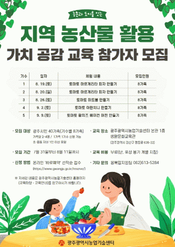 ½Ã³ó¾÷±â¼ú¼¾ÅÍ´Â ±³À°À» ÅëÇØ Å丶Å並 Ȱ¿ëÇÑ ´Ù¾çÇÑ ¿ä¸® ·¹½ÃÇǸ¦ ¼Ò°³, Å丶Åä ¼Òºñ¸¦ ÃËÁøÇÏ´Â È¿°ú°¡ ³ªÅ¸³¯ °ÍÀ¸·Î ±â´ëÇϰí ÀÖ´Ù.