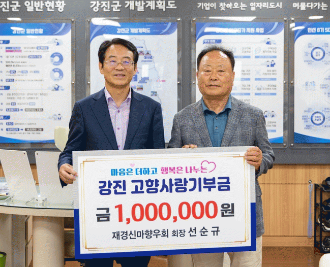 °Áø±ºÀº Áö³ 14ÀÏ ¸¶·®¸é Àç°æ½Å¸¶Çâ¿ìȸ ¼±¼ø±Ô ȸÀåÀÌ °ÁøÀ» »ç¶ûÇÏ´Â ¸¶À½À» ´ã¾Æ °íÇâ»ç¶û±âºÎ±Ý 100¸¸ ¿øÀ» ±âŹÇß´Ù°í ¹àÇû´Ù.