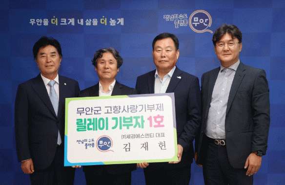 À̳¯ ±º¼ö½Ç¿¡¼ ¿¸° °íÇâ»ç¶û±âºÎ ¸±·¹ÀÌ Ä·ÆäÀÎÀÇ Ã¹ ÁÖÀÚ·Î ³ª¼± ¢ß¼¼°æ¿¡½º¿£Æ¼ ±èÀçÇå ´ëÇ¥´Â ¹«¾È±ºÀÇȸ ±è°æÇö ÀÇÀåÀÇ ¼Ò°³·Î Âü¿©ÇÏ°Ô µÆÀ¸¸ç, À̳¯ 100¸¸ ¿øÀ» ¼±¶æ ±âºÎÇÏ¸ç ¹«¾ÈÀÇ ¹ßÀüÀ» ÀÀ¿øÇß´Ù.
