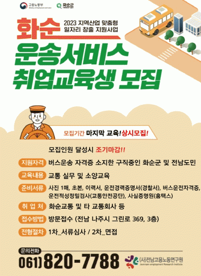 ¡®¹ö½º ¿î¼Û ¼ºñ½º Àü¹®Àη ¾ç¼º»ç¾÷¡¯Àº 2023³â Àü¶ó³²µµ Áö¿ª»ê¾÷ ¸ÂÃãÇü ÀÏÀÚ¸® âÃâ Áö¿ø»ç¾÷ÀÇ ÀÏȯÀ¸·Î ȼø±ºÀÌ ÁÖ°üÇϸç, (»ç)Àü³²°í¿ë³ëµ¿¿¬±¸¿øÀÌ »ç¾÷¼öÇàÀ» ´ã´çÇÑ´Ù.