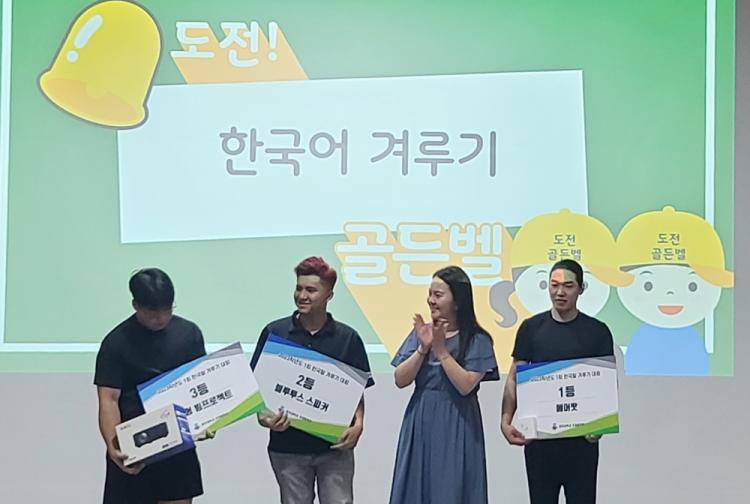 °ñµçº§ ¹æ½ÄÀ¸·Î ÆîÃÄÁø Çѱ¹¾î °Ü·ç±â´Â Çѱ¹¾î¸¦ ºñ·ÔÇØ Çѱ¹ ¹®È, ¿ª»ç, »ó½Ä µîÀ¸·Î Çѱ¹¾î ½Ç·ÂÀ» °Ü·é ³¡¿¡ ¿¨ÈåǪ·¾ ¹¶Èå¿¡¸£µ§(¸ù°ñ)ÀÌ ¿µ¿¹ÀÇ ¿ì½ÂÀ» Â÷ÁöÇß´Ù. ¶Ç Çѱ¹¾î ¿¬¼ö °úÁ¤ ¼ö·á½Ä¿¡¼´Â Àû±ØÀûÀÎ ¼ö¾÷ Âü¿©¿Í ±Ù¸é ¼º½Ç, ºÀ»çÁ¤½ÅÀ» ÀÎÁ¤¹ÞÀº ÃÑ 10¸íÀÇ À¯Çлý¿¡°Ô ¿ì¼ö»óÀ» ¼ö¿©Çß´Ù.
