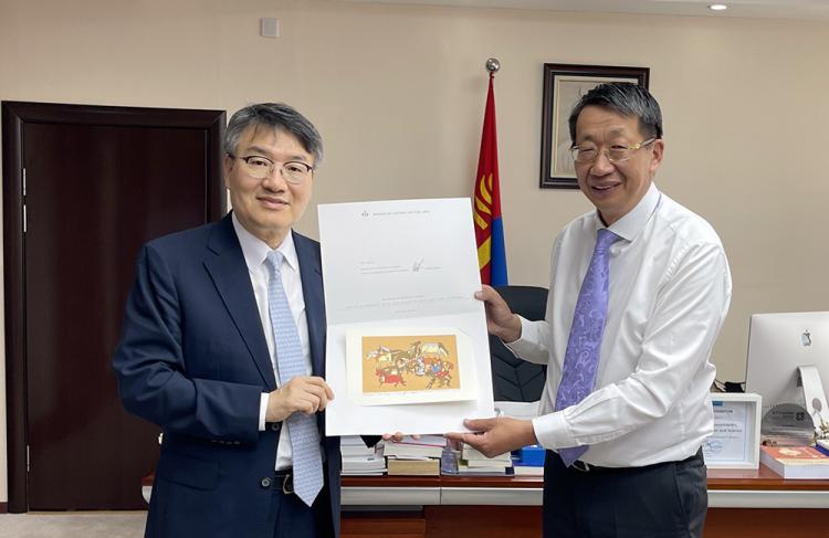 [ÅåÅå´º½º] ¹Ú»óö È£³²´ëÇб³ ÃÑÀåÀº 7¿ù 28ÀÏ ¿£Ä« ¾Ï°¥¶õ(L.Enkh-Amgalan) ¸ù°ñ ±³À°ºÎ Àå°ü°ú ¸¸³ª ÇÑ¡¤¸ù ¿ìÈ£ ÁõÁø°ú ±³À°¡¤±³·ù È®´ë¸¦ À§ÇÑ È¯´ãÀ» °¡Á³´Ù.