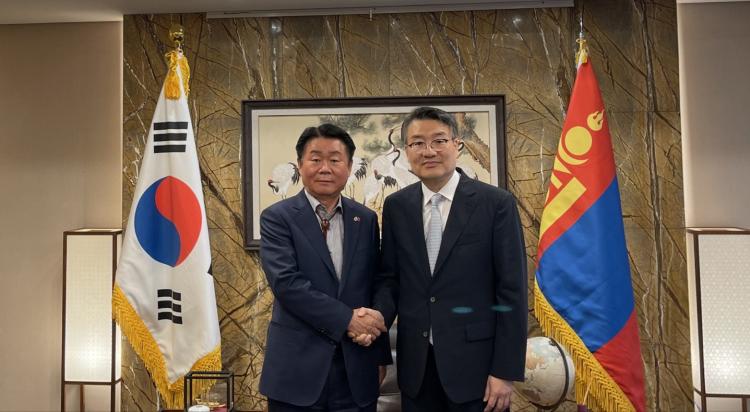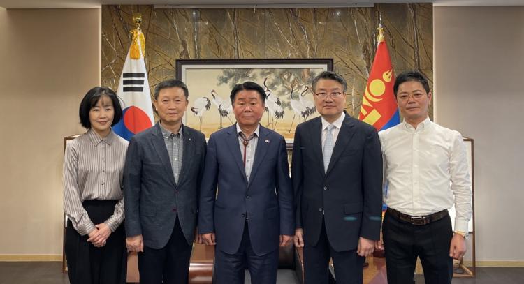 ¸ù°ñÀ» ¹æ¹®ÁßÀÎ ¹Ú»óö È£³²´ëÇб³ ÃÑÀåÀº À̳¯ ¼Õ¿ÏÀÌ ±¹Á¦±³·ùóÀå, È£³²´ë Ãѵ¿Ã¢È¸ ±è¼ºÀ± Àü ȸÀå, ±è¸í±º ¾Æ½Ã¾Æ¹®ÈÀåÇÐÀç´Ü ÀÌ»çÀå °â ÁÖÇѸù°ñ¸í¿¹¿µ»ç¿Í ÇÔ²² ÁÖ¸ù°ñ Çѱ¹´ë»ç°üÀ» ¹æ¹®ÇÏ¿© ±èÁ¾±¸ Ư¸í´ë»ç¿Í ȯ´ãÀ» ³ª´³´Ù.